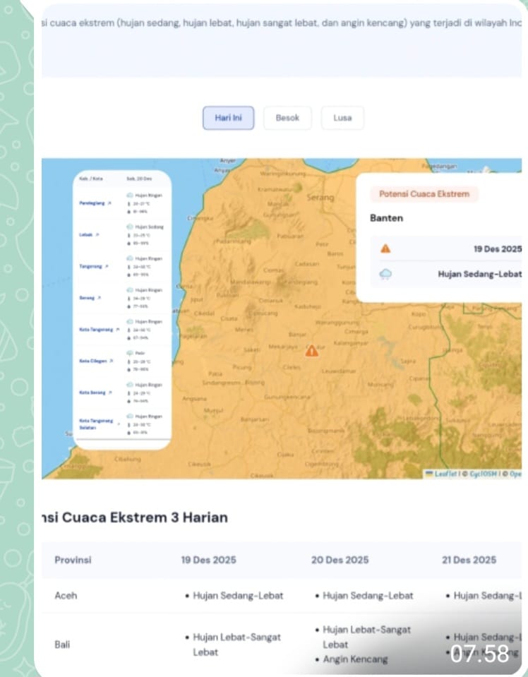 Polsek Cinangka menyatakan akan terus melakukan pemantauan secara berkala serta siap memberikan bantuan lanjutan apabila kondisi cuaca kembali memburuk dan debit air meningkat.