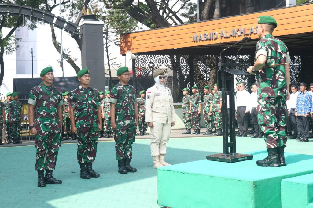 Tangerang,Liputannusantara.id- Danrem 052/Wijayakrama Brigjen TNI Brigjen TNI Zulhadrie S, Mara, M.Han., memimpin upacara pelantikan kenaikan pangkat prajurit dan Pegawai Negeri Sipil (PNS) Makorem 052/Wkr 1 Oktober 2025, bertempat di Lapangan Upacara Makorem 052/Wkr, Kelapa Dua, Kabupaten Tangerang, Rabu (1/10/2025).