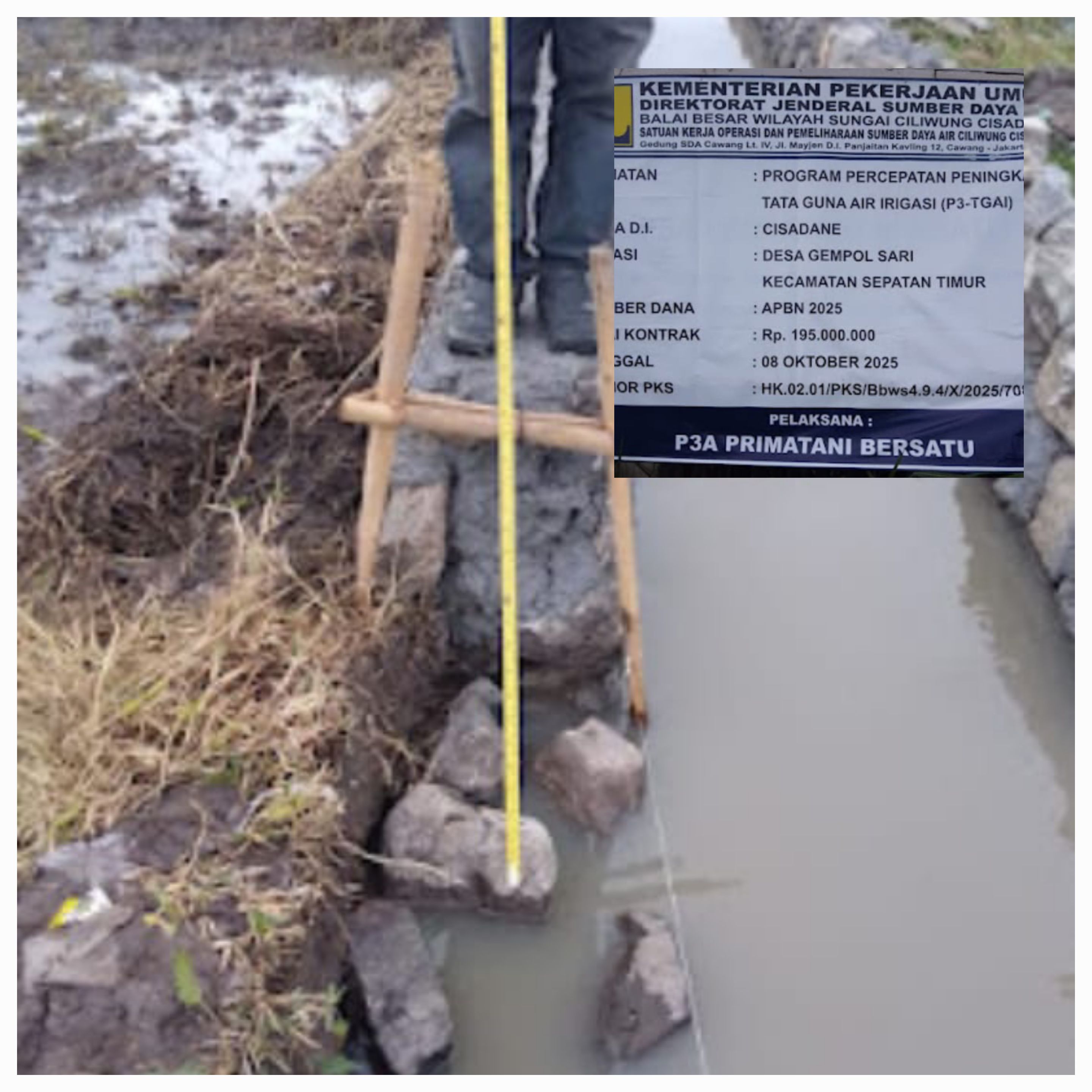 Kabupaten tangerang,Liputannusantara.id- 22/11/2025.- Liputan nusantra Program percepatan peningkatan tata guna air irigasi”P3-TGAI.yang berada di desa Gempolsari Kecamatan Sepatan timur berasal dari dana (APBN.2025) dengan nilai kontrak.Rp.195.000.000, pelaksana”P3.Primatani bersatu menuai perbincangan publik karena diduga dikerjakan tak sesuai spesifikasi.