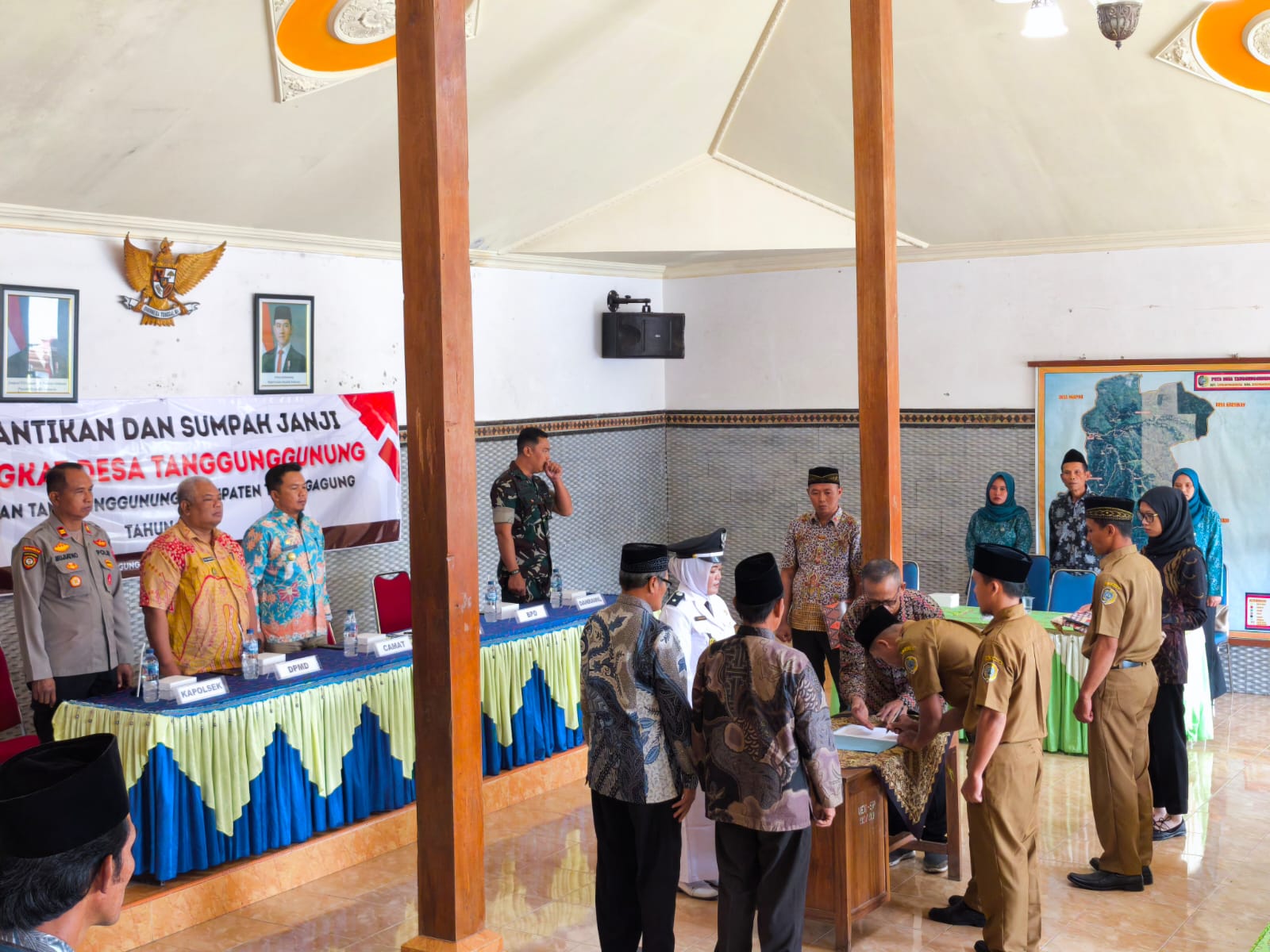 “Saya bersumpah,Bahwa Saya akan memenuhi tugas-tugas selaku Perangkat Desa Tanggunggunung Kecamatan Tanggunggunung Kabupaten Tulungagung dengan sebaik-baiknya,Sejujur – jujurnya dan Seadil-adilnya.Saya akan Selalu taat dalam mengamalkan serta mempertahankan Pancasila sebagai dasar Negara Kesatuan Republik Indonesia,Saya akan menegakkan Kehidupan Demokrasi dan undang-undang Dasar Tahun 1945 serta melaksanakan segala peraturan perundang-undangan selurus – lurusnya yang berlaku bagi desa,daerah dan Negara Kesatuan Republik Indonesia”,…Bunyi Sumpah yang dibacakan oleh Kepala Desa Tanggunggunung dan di ikuti oleh 3 Terlantik.