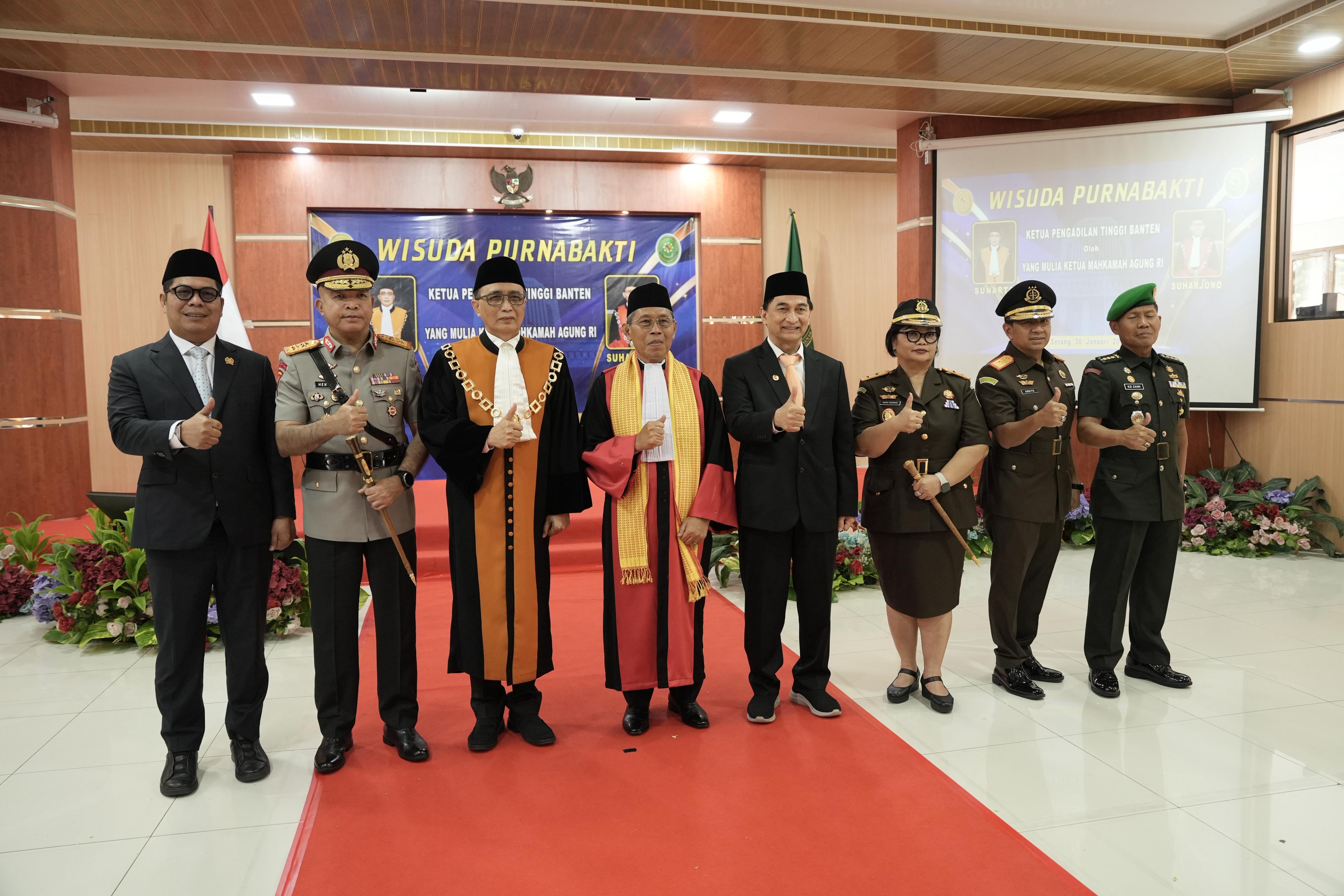 Hadir dalam kegiatan tersebut Mahkamah Agung RI Prof. Dr. H. Sunarto, Wakil Gubernur Banten Achmad Dimyati Natakusumah, Kajati Banten Bernadeta Maria Erna Elastiyani, Wakajati Banten Ardito Muwardi, serta Ketua DPRD Provinsi Banten Fahmi Hakim.
