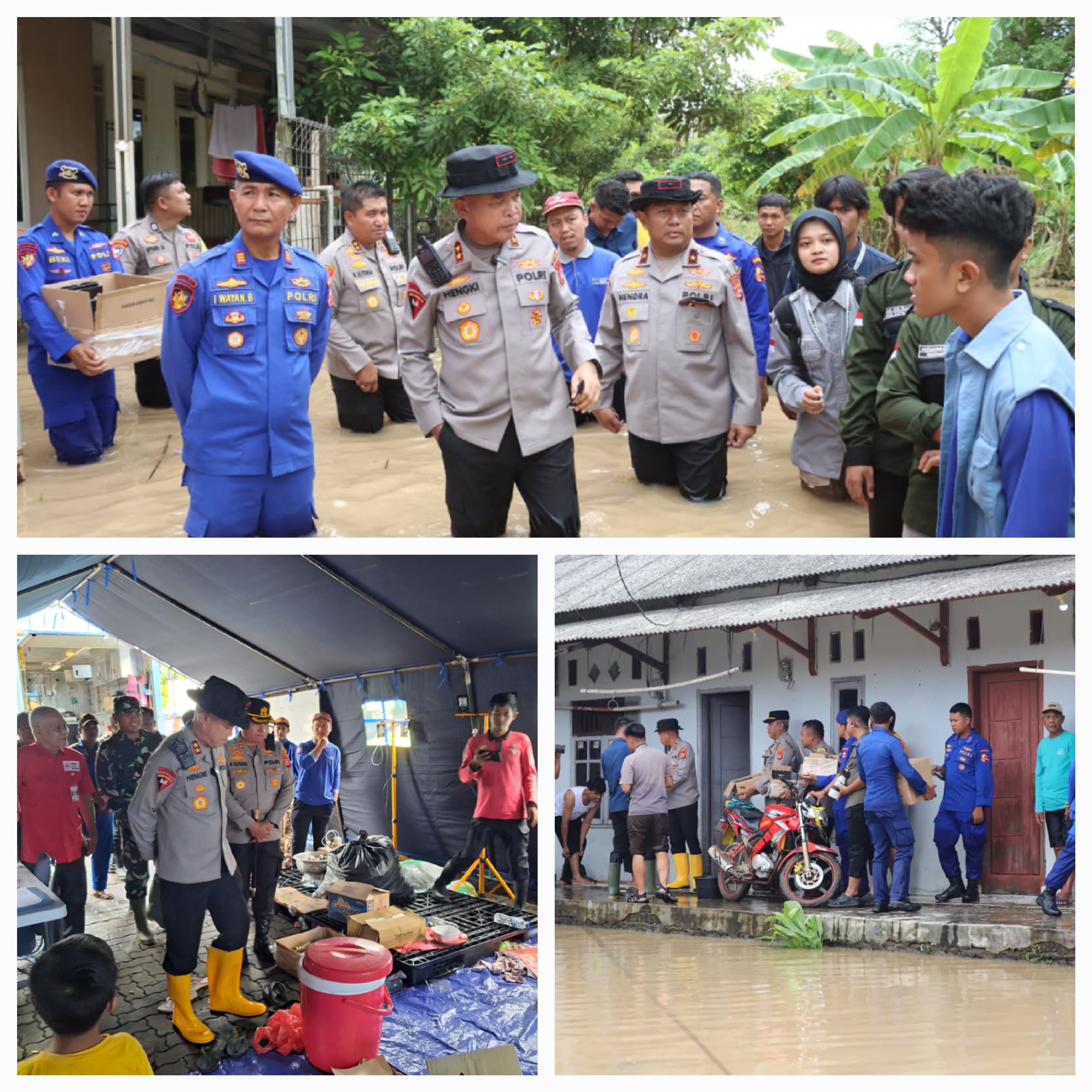 Usai meninjau dapur umum, Kapolda Banten melanjutkan pengecekan ke lokasi banjir di Lingkungan Sambirata RT 005/003, Kelurahan Cibeber, Kecamatan Cibeber. Di lokasi tersebut, Kapolda melihat langsung kondisi pemukiman warga yang terdampak banjir sekaligus menyerahkan bantuan makanan kepada masyarakat sebagai bentuk empati dan dukungan moril.