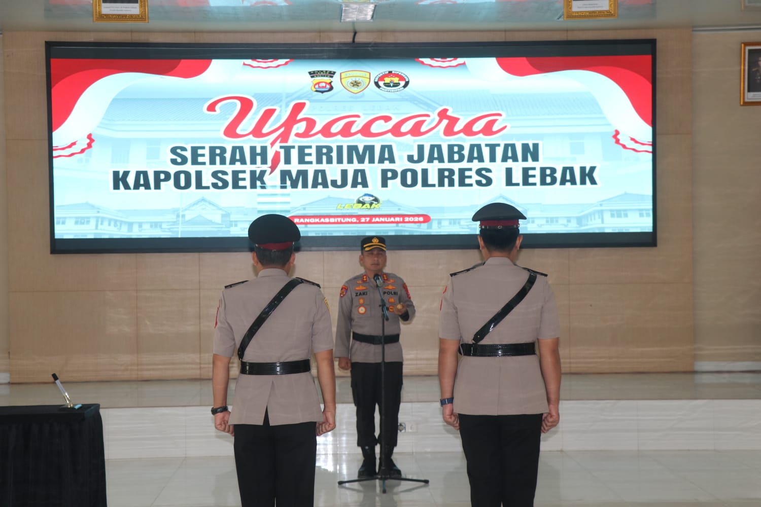 Berdasarkan Surat Keputusan Kapolda Banten Nomor : KEP/66/I/2026 tanggal 12 Januari 2026 tentang pemberhentian dan pengangkatan dalam jabatan di lingkungan Polda Banten, Jabatan Kapolsek Maja Polres Lebak diserah terimakan dari Kompol Achri Dwi Yunito,SIK,MH kepada