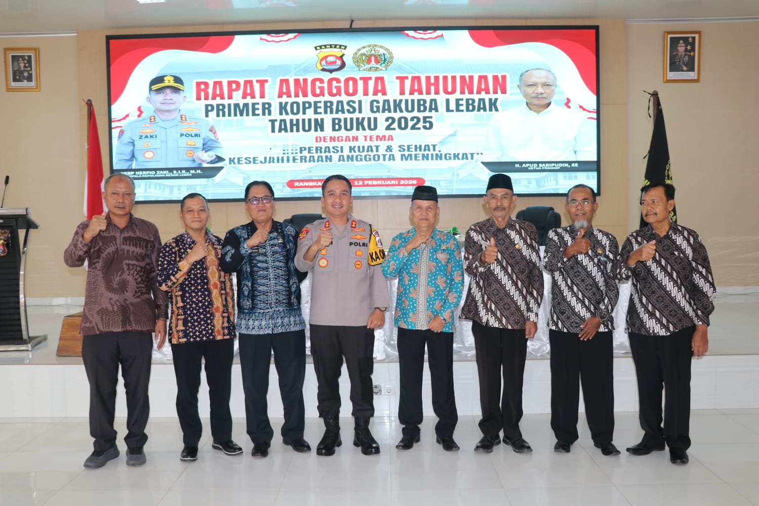 Lebak ,Liputannusantara.id- Kapolres Lebak AKBP Herfio Zaki, S.I.K., M.H membuka secara resmi Rapat Akhir Tahunan (RAT) Primer Koperasi Gakuba Lebak Tahun Buku 2025 dengan tema “Koperasi Kuat dan Sehat, Kesejahteraan Anggota Meningkat”. Kegiatan tersebut dilaksanakan di Aula Sanika Satyawada Polres Lebak pada Kamis (12/2/2026).