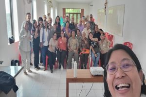 Usai Pelatihan peserta pekad berfoto bersama romo Wartaya SJ (pakai Blankon),sebelah kirinya (ubanan ) penulis artikel ini di media Liputan Nusantara.