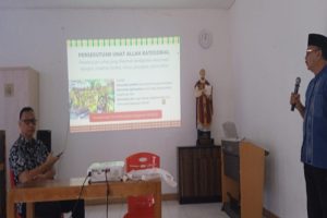 Herman Yoseph Siswadi wakil DPH (pake peci, pegang mig)sekaligus instruktur dengan topic strukrur dewan paroki .