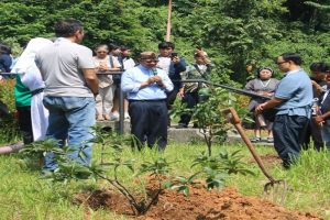 Uskup Keuskupan Sufragan Bogor Mgr. Paskalis melakukan penanaman pohon di depan Graha