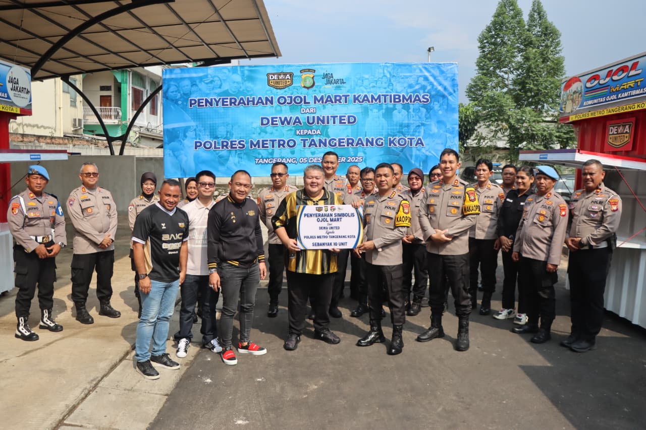 Tangerang,LIputannusantara.id – Polres Metro Tangerang Kota menerima secara resmi bantuan 10 unit Ojol Mart dari manajemen Dewa United. Serah terima berlangsung pada Jumat, 5 Desember 2025, bertempat di depan Gedung Parkir Polres Metro Tangerang Kota. Kegiatan dihadiri sejumlah pejabat utama Polres serta jajaran pimpinan Dewa United dan PT. Lima Sekawan Indonesia.