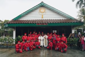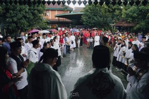 Romo Wartaya SJ, yang memimpin misa tutup Tahun Yubilem ini, Sementara perarakan berlangsung dilagukan nyanyian perarakan.