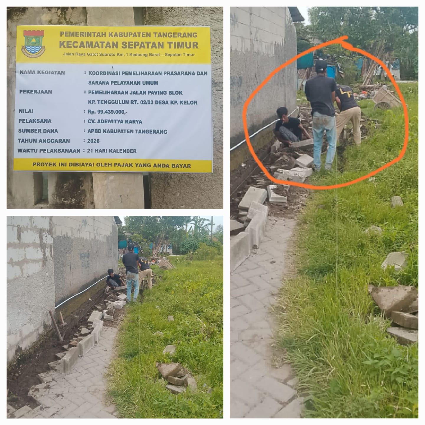 ‎Tangerang, Liputan.Nusantara.id- Kurangnya Pengawasan kegiatan pemeliharaan jalan paving blok kampung tenggulun RT.02/03 Desa kampung kelor Kecamatan Sepatan timur Kabupaten Tangerang,  amburadul pelaksanaan proyek yang seharusnya mengutamakan kualitas dan akuntabilitas. di duga dikerjakan asal jadi  tanpa standar teknis, Sabtu (28/2/2026)