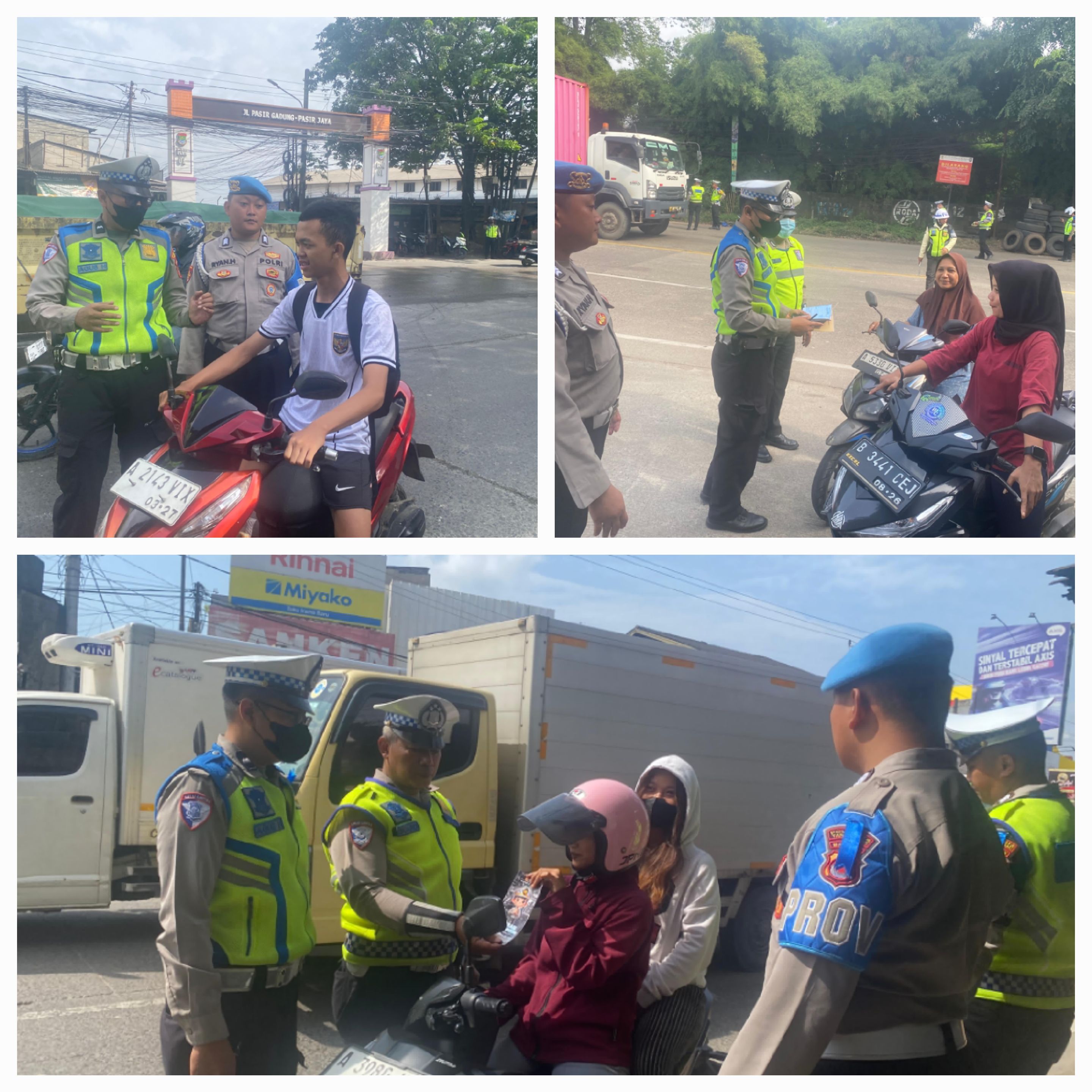 Petugas secara aktif memberikan imbauan mengenai penggunaan Helm SNI, kepatuhan terhadap lampu lalu lintas, hingga penggunaan sabuk pengaman bagi pengendara roda empat.